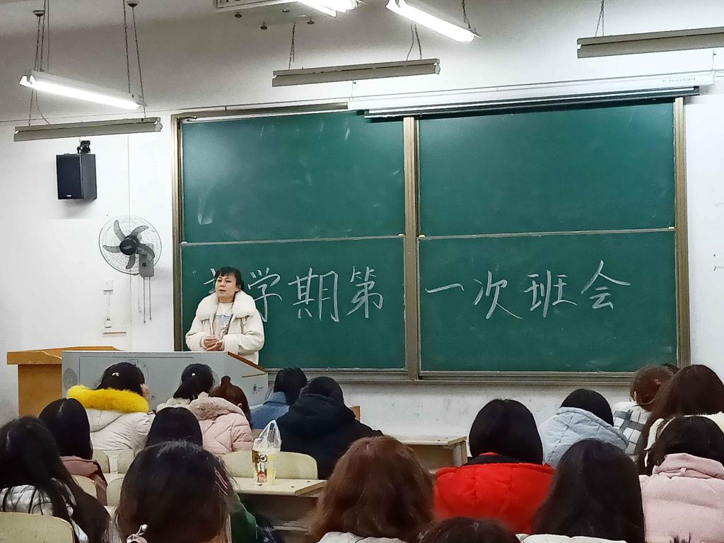 3、新学期伊始,辅导员李婧妮老师召开新学期主题班会,首先了解了同学们的假期思想动态,同时提醒各位同学们及时调整生物钟,投入到新学期的学习生活中。接着李老师总结了上学期的期末考情,督促大家制定新学期目标,特别是17级备考专四的同学们,一定要明确学习目标,并积极努力备考。最后李老师提醒同学们,正值季节交替之际,同学们要做好寝室卫生,做好流感防护。(供稿人:李艳、李婧妮)