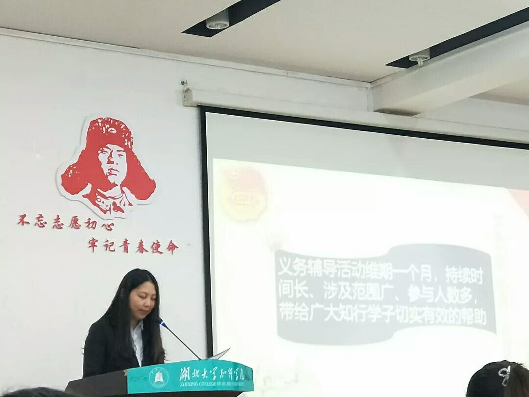 4月2号上午,第二届志愿服务项目大赛答辩活动在学术报告厅302举行。本次活动中,yl7703永利集团以“一系一品” 英语四六级义务辅导特色志愿服务为项目,由志愿者代表唐依毅,进行了答辩。在整个答辩活动中,我院志愿者代表都以极佳的风貌,向评委老师及本次活动的参与者,展现了外语人的风采。