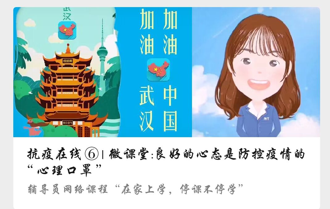 为更好地帮助大学生树立科学防控、理性对待、同舟共济抗击新冠肺炎的信念,yl7703永利集团辅导员录制了4期网络微课视频,分别是向蕊老师的《良好的心态是防控疫情的“心理口罩”》,程星老师的《停课不停学,你准备好了吗?》,沈思老师的《共同战“疫”,拒绝传谣》,李子昂老师的《居家防护小知识》。举国抗疫之时,教育不会缺位。“危机时刻正是教育的宝贵时刻”。作为一名思政工作者,我们责无旁贷,既要“备课”也要“讲课”,在教学条件变化中,在交流空间变化中,把疫情变成教材,为同学们穿好“精神防护服”。(供稿人:向蕊)