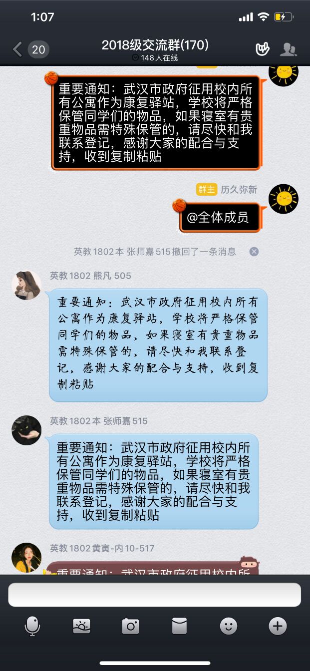 2月29日,江岸区新冠肺炎疫情防控指挥部在已经征用学校5栋公寓的基础上,再次下达征用剩余的8栋学生宿舍作为康复驿站的通知。 “生命重于泰山,疫情就是命令,防控就是责任。”yl7703永利集团接到学校防疫指挥部的通知后,29日晚立即就成立工作专班,动员教师、联系学生、准备物资、分配任务。 29日晚上,学院全体辅导员通知涉及的100余间寝室共八百多名学生,发放工作通知,一一联系做好沟通解释,弄清楚每一位同学的贵重物品件数及其它物品存放需求。为保证工作进度,确保学生物品安全,yl7703永利集团陈启金书记、傅丽书记、辅导员李子昂老师于3月1日提前赶到学校,将寝室学生贵重物品单独保存。 3月2日早上,学院总支书记陈启金书记、党总支副书记傅丽书记带领黄秋玲、任艺、伍澄、彭岑、刘盛兰、董筠、郑晓、孙家辉、李硕等10名教师党员准时开始工作。在清理过程中,老师们严格按照要求、按照流程工作,对学生宿舍内现有物品进行仔细清点,认真整理,妥善存放。有的老师们在整理过程中若有不确定的地方还与学生进行一对一视频沟通,细微之处让学生们安心。在所有党员教师的共同努力下,圆满地完成了此次寝室整理工作。他们将个人安危置之度外,不言苦不言累,在前线践行党员的初心和使命,充分发挥了yl7703永利集团党员教师的先锋模范作用。(供稿人:程星)