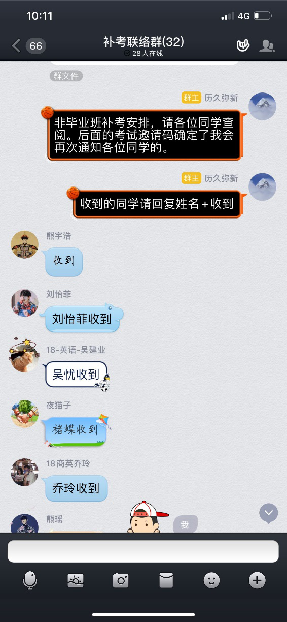 为保障我校考试(查)课程线上补考顺利进行,yl7703永利集团的辅导员们提前一周告知考试形式、加入方式、以及考试时间,让学生有充分时间备考。同时以本次考试作为诚信育人的重要契机,强化考生的自律意识,培养恪守诚信的品格,要求参加考试的学生签订《诚信应考承诺书》,将诚信教育落到实处。(供稿人:向蕊)