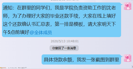为进一步做好生源地贷款学生的贷后管理工作,规范国家助学贷款贷后管理程序,促进我院国家助学贷款工作持续、健康发展,我院于近期按照学校下发的毕业生生源地贷款确认方案进行了具体的工作安排:本周内成立了以学院书记、副书记领导、辅导员、资助负责老师为主力的工作小组,责任细化到个人;建立了2020届学院毕业生生源地贷款确认QQ群,资助负责老师汇总毕业确认所需信息,对全院所有已贷款的毕业生名单进行细致核对,排查出5名非本院毕业生并已上报到校资助中心。下周计划是我院会采取网上培训的方式,让需还款的毕业生熟知还款流程和操作过程;收集学生电子版的毕业还款确认书;辅导员会对每一位要办理还款手续的毕业生进行诚信教育谈话,让学生了解毕业后及时还款的重要性。(供稿人:沈思)