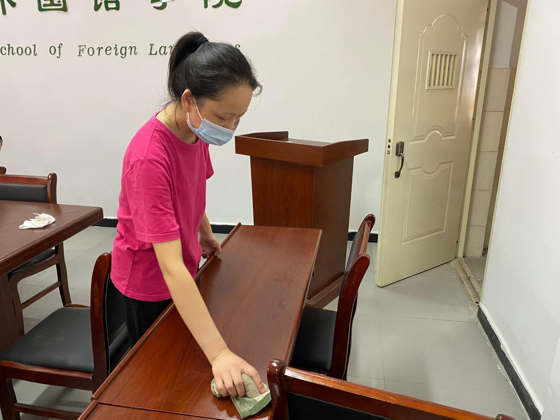 学生党支部组织学生党员开展了语音室卫生清洁活动