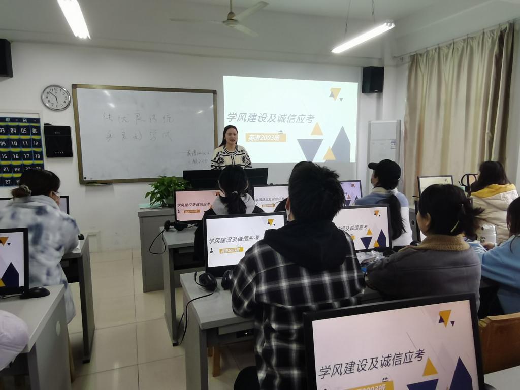 临近期末考试,为重申考试纪律,强调考风考纪,本周,向蕊老师班级组织开展诚信教育主题班会。(供稿人:向蕊)