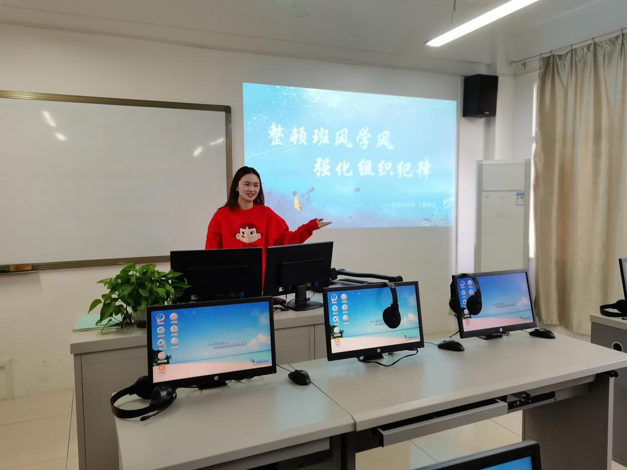 为了贯彻执行学校“四风建设”方针政策,稳步推进优良班风学风建设,黄小雨老师在英语2004班召开“整顿班风学风,强化组织纪律”主题班会。会中,黄小雨老师指出:在学习中,常见的几种不良风气和态度主要与我们自身有关。同时,通过观看视频,让我们对课堂上的一些不文明行为有了深刻认识,并再一次向我们强调了学习的重要性,提出要营造良好的学习氛围,培养学习兴趣,牢记:“深思,乐学,团结,进取”这八个字。最后,黄小雨老师对此次班会做出了点评,给予同学们期望,希望同学们可以严于律已,加强自主学习,同时告诫同学们不可待在自己的舒适圈里,要有长远的眼光,要对自己的学习现状有清晰的认知,学会定期自省自查,要有明确的学习目标,制定相应的学习计划,以达到预期的学习效果,为期末考试做好准备。(供稿人:黄小雨)