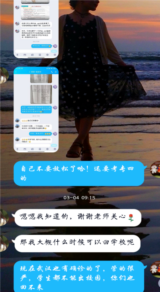 建立动态数据库。辅导员实时掌握学生所在地区的动态疫情讯息,并每日开展一对一聊天和沟通,为学生心理疏导,引导学生树立乐观心态。学业帮扶有益补充。学院积极发挥学生干部作用,安排班干部开展“远程”帮扶,传达课程任务,提供学习笔记,为未返校学生提供精准化的学业帮助,让居家的学生也能体会集体归属感。