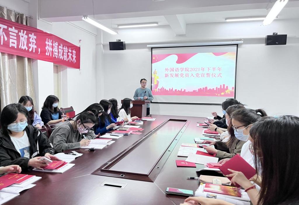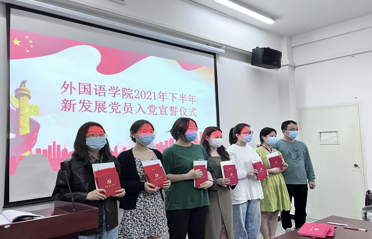 宣誓 仪式上,学生党员代表刘晓蓓同志从自身工作和学习出发,畅谈共产党员的担当和责任,表明了投身党的事业的决心和勇气,表示将牢记入党誓词,不断加强学习,提高政治素养,本着全心全意为人民服务的根本宗旨,在今后的学习和工作中严格要求自己,发挥共产党员的先锋模范作用。学生党建指导老师程星老师向2021年下半年发展的17名党员同志颁发党员手册、党员笔记本、党章、党徽、政治生日贺卡,并向全体党员提出明确要求,一是要恪守入党誓词,充满信心、坚定信念,增强“不进则退,慢进也是退”的危机观念,通过实践不断提高自己;二是要不断端正入党动机,以党员标准严格要求自己,做到组织上入党和思想上入党相统一;三是要加强基层党建工作,团结合作,发挥党员先进示范作用,影响并带领广大同学们共同进步。(供稿人:程星)