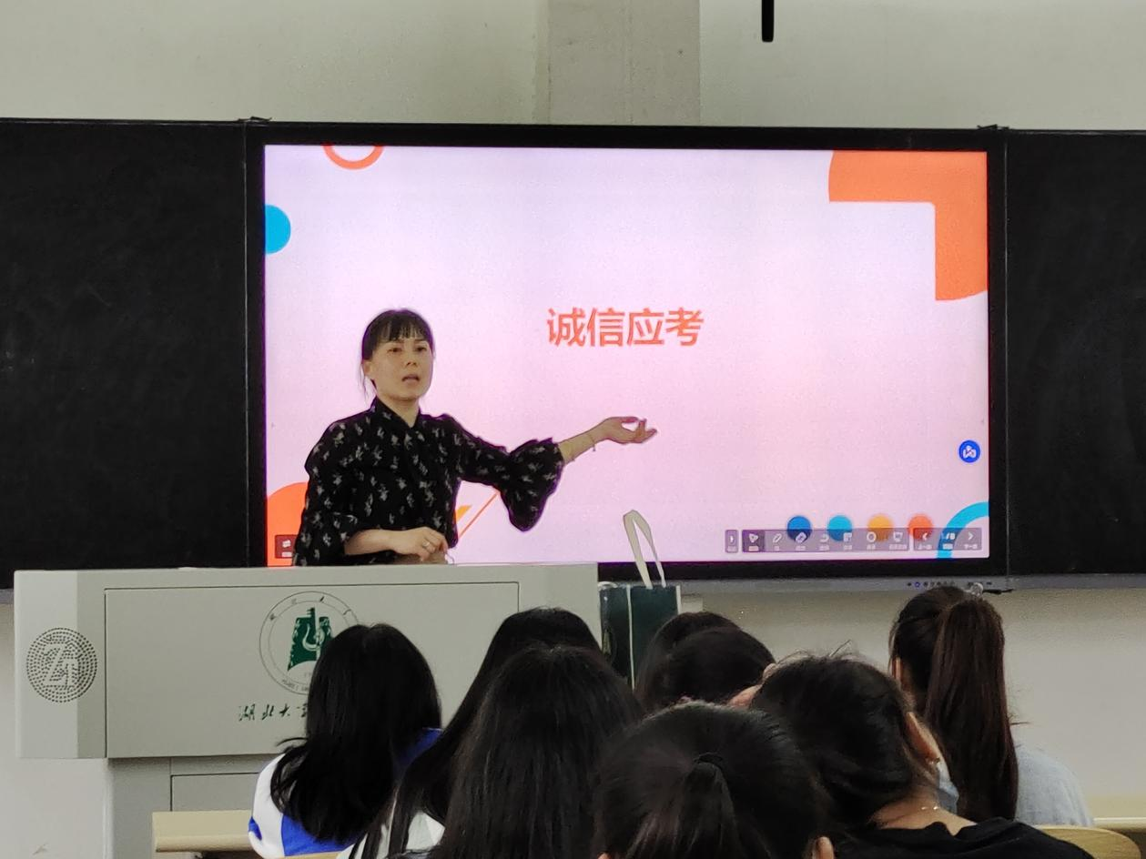 3. 本周辅导员沈思老师商英2001班召开了班级期末考试诚信教育的主题班会,会上,沈老师为同学们强调了临近期末考试,希望同学们坚持诚信应考、无作弊行为的优良考风。(供稿人:沈思)