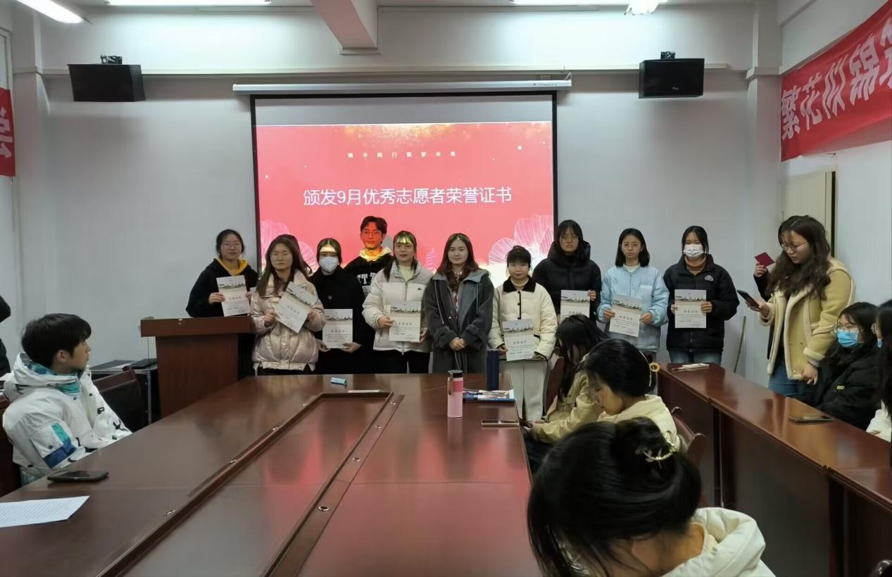 为引导学生全面认识抗疫成果,做勇担使命的先行者,自觉弘扬抗疫精神,做奋进力量的传递者。yl7703永利集团青志大队开展2022年9至11月份优秀志愿者表彰会暨座谈会。指导老师黄小雨对上学期“绽放青春防疫有我”活动中做出突出贡献的同学表示感谢并为他们颁发了校级荣誉证书。随后的座谈会中志愿者代表分享志愿心得,同学们畅所欲言,结合各自的工作经历,分享实践活动过程中的收获和感悟,针对实践服务中遇到的问题和困难进行探讨与交流,并对今后开展志愿服务活动提出了许多创新性和建设性的想法和建议。(供稿人:黄小雨)