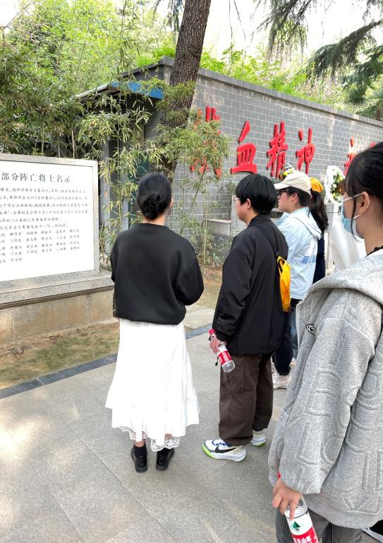 为缅怀革命先烈、传承红色基因,弘扬英雄精神,宣传爱国主义精神,黄小雨老师带领法语2201团支部在清明节前夕前往江岸区辛亥首义烈士陵园开展了“清明祭英烈,丰碑砺青春”的扫墓团日活动。八名献花学生代表清扫墓碑杂尘并献花,祭扫完成后,全体成员参观园内公告栏所展出的辛亥首义展览,学习了为争取民族独立、捍卫辛亥革命胜利成果,辛亥首义烈士们前仆后继、英勇献身的爱国事迹。本次团日活动以清明节为契机,由讲故事、看视频、踏青、献花等形式为载体,激励学生永远铭记革命传统,大力弘扬民族精神。(供稿人:黄小雨)