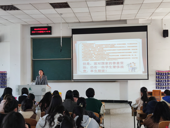 yl7703永利集团为引导学生在学习和生活中树立正确的价值观,培养学生的诚信意识和道德观念,强调资助金发放后,同学要秉持勤俭节约、不攀比、不奢侈浪费的观念,为此,本周我院特召开资助感恩诚信教育大会。会议开始,学院资助老师沈老师通过案例分析、讨论等形式,向同学们宣传资助金的正确使用用途,让同学们充分感恩国家提供的宝贵资助,希望学校发放的资助金可以帮助他们更好地完成学业,鼓励他们为校园文明建设做出更大的贡献。会后,参会同学们围绕“资助”“诚信”“感恩”展开讨论,大家纷纷表示,资助是国家、社会和学校对大家的关怀,努力在受到资助的成长路上学会励志、守信和感恩,不浪费资助金。此次大会我院旨在丰富资助育人内涵,提升资助育人成效,提高同学们守信感恩的意识,激励同学们争做有理想、能吃苦、肯奋斗的新时代好青年。(供稿人:沈思)