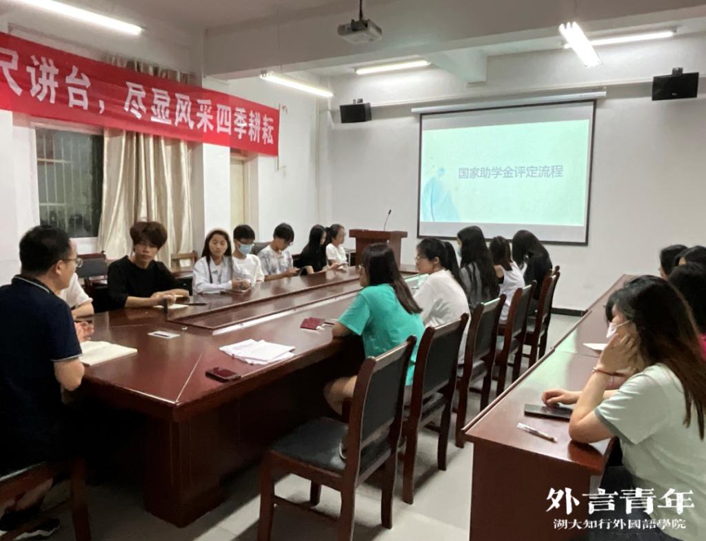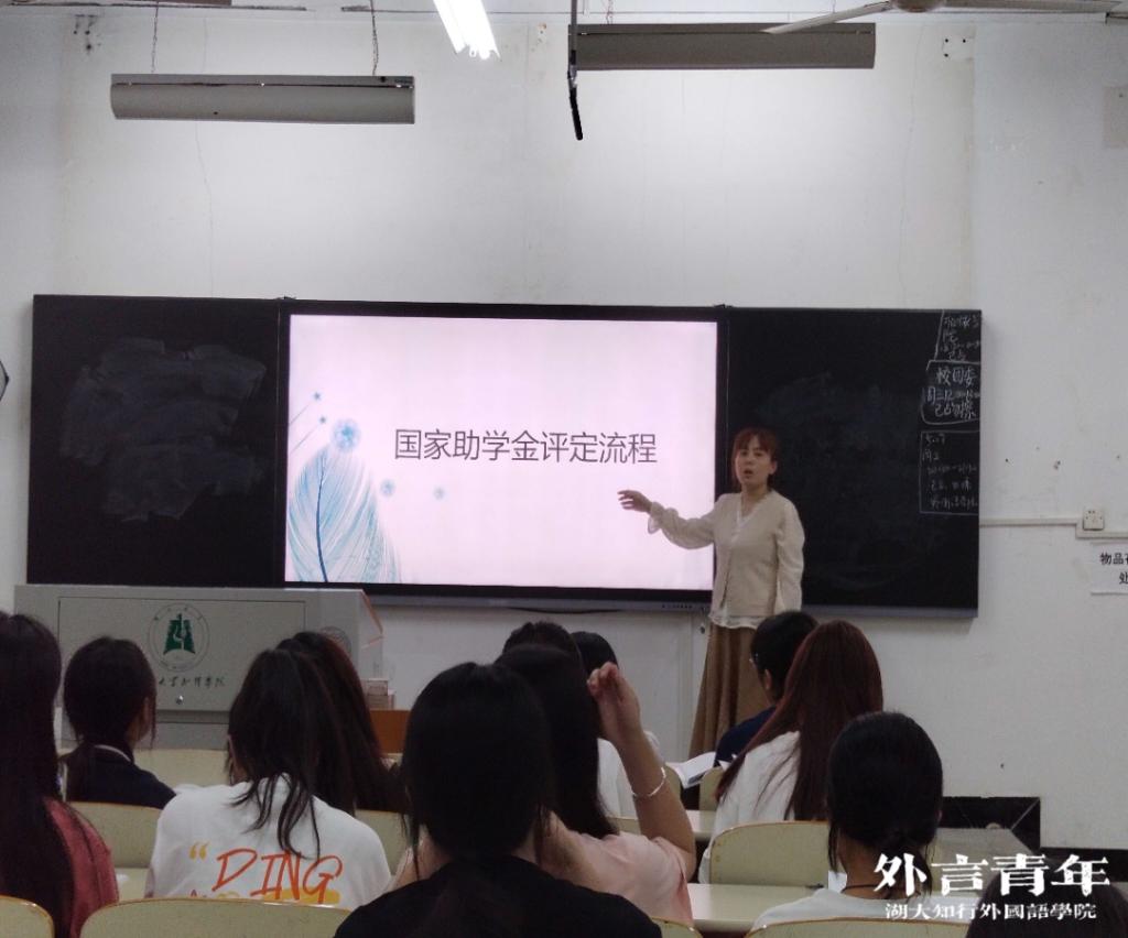 2. 5月17日,向蕊老师召开了国家助学金宣传班会,会上向老师传达了相关的文件精神,介绍了评定流程,讲解了申请助学金所需要的资料,提醒有需要的同学提前准备材料,同时对同学们有疑问的地方一一解答。(供稿人:向蕊)