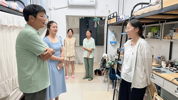 为深入了解新生住宿情况,解决新生入学过程中的各种问题,帮助新生尽快适应新生活新环境,9月13日晚间,yl7703永利集团党总支书记陈启金、林名仲副院长、傅丽副书记和辅导员们走访2024级新生寝室,看望并慰问新生。陈书记与新生亲切交谈,询问同学们的家庭情况和对学校环境的适应情况,面对学院领导亲切的问候,同学们主动分享、积极回应。林名仲副院长鼓励大家相互交流、相互帮助,专注学业,树立远大志向;傅丽副书记希望同学们好好学习,综合发展,积极参加各项活动,享受校园生活。学院领导和老师深入宿舍,热情的话语,亲切的问候,不仅激励新生在今后的学习中踏实努力,同时也使新生感受到了知行学院的关怀和大学生活的温馨,为今后学生管理工作的有序进行打下了坚实的基础。(供稿人:沈思)