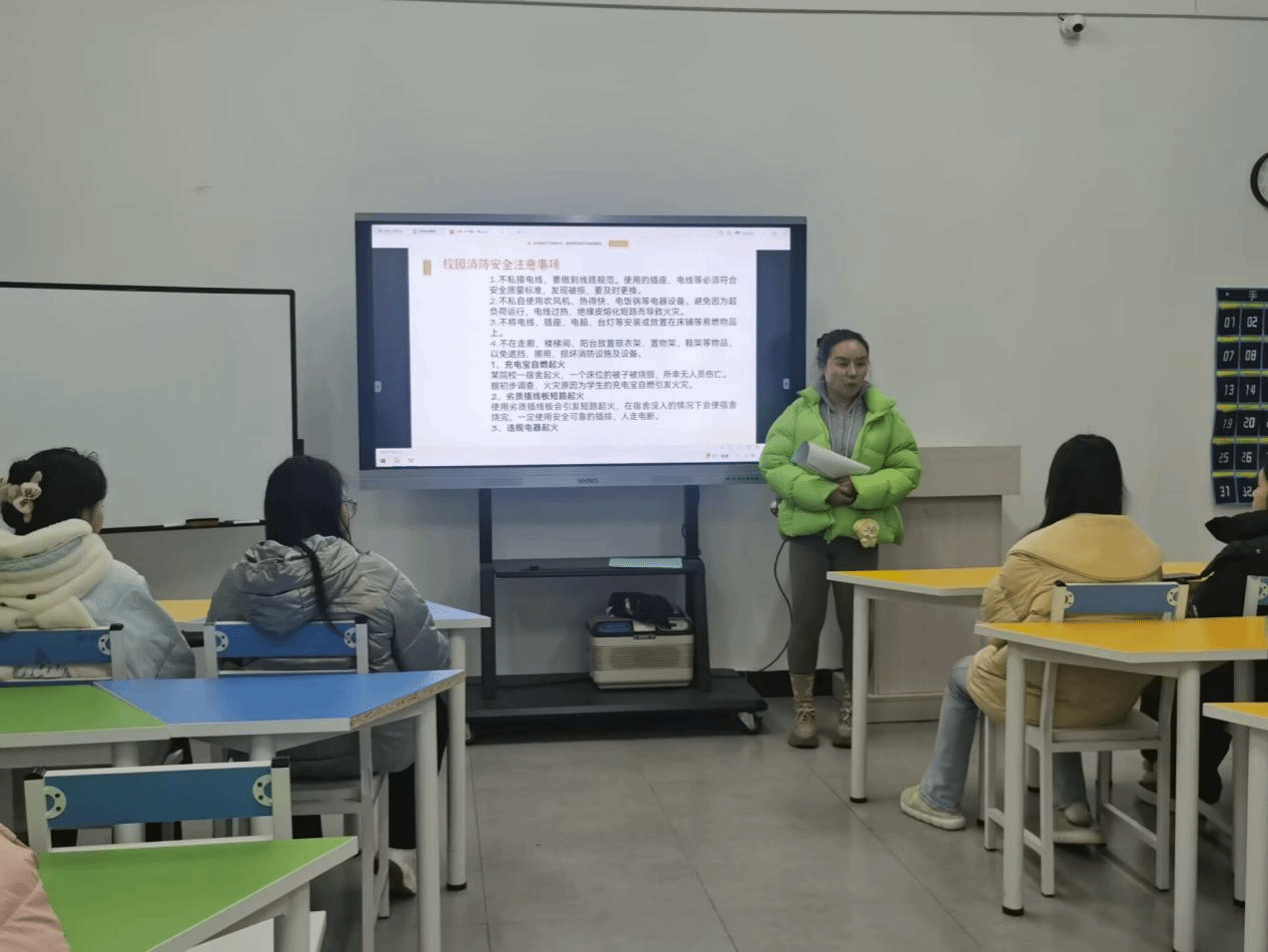 程老师围绕安全问题提醒同学们要时刻保持警惕,注意消防安全,人身安全和网络安全,并再次强调了校纪校规,每位同学都应当严格遵守学校的各项规章制度。